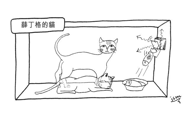 以「薛丁格的貓」來說明什麼是所有可能世界的加疊。設想一個密閉的盒子中,有一隻餓扁了的貓,盒中有一個裝置,包含一個放射性元素。放射性元素有半衰期,假設半衰期為五分鐘,五分鐘之後這個元素衰變的機率為○.五。如果這元素衰變了,裝置會釋出一塊劇毒魚肉,貓會吃它,然後瞬間死亡。五分鐘過去了,薛丁格問:現在貓是死、是活? 常識上的回答是「貓不是死了就是活的」。正確答案卻是:在打開盒子觀看之前,貓是既死且活。打開盒子後,貓就只有一種可能,不是死了就是活著。薛丁格想要說明的道理是,沒有觀察盒中貓時,兩種可能同時真實存在。但是我們的經驗世界中卻只有其中一種為真,貓完全不可能同時是死的又是活的,所以世界本身是兩種可能性的加疊。只要機率不是零,在世界本身中都真實存在。