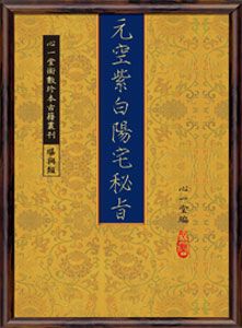 《元空紫白陽宅秘旨》。一冊不分卷。綫裝。不著撰人姓名。清光緒二年道一氏鈔本。未見著錄。未刊稿。虛白廬藏本。 三元玄空家之書,歷來甚少陽宅專著,本書闡釋三元玄空家之陽宅作法、斷應,及陽宅之挨星法及與陰宅...