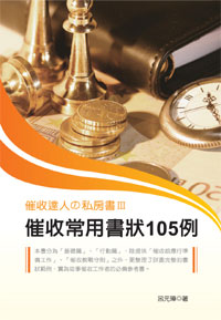 本書作者以往在面臨無擔保債務人的追索時,時常遭遇到一個問題:即使是透過國稅局去申請債務人的財產、所得資料後,由於國稅局所得資料大約有一年半的時間落差,再根據資料去強制執行時,債務人不是已經離職,...