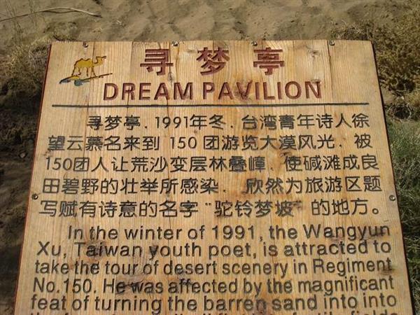 找到「駝鈴夢坡」的下落後,我開始注意那個旅遊景點的動態,有網友去那邊旅遊回來後,貼在微博或部落格的照片,都會一看再看,甚至有一張,拍出一個涼亭的坡下,有個木牌,記載著當年我命名的「故事」,雖然與事實有些出入,但仍令我相當感動。不敢想像未來還有沒有機會去駝鈴夢坡走走。