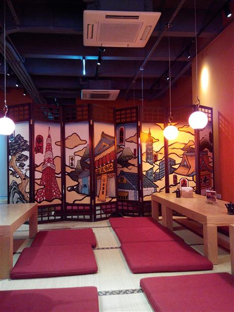 餐廳地板由榻榻米鋪成,因之進去用餐前都必須脫鞋。不得不說,脫鞋是有一定的風險的,譬如今天剛好穿到起毛球或者鬆掉的舊襪子阿、腳最近比較臭阿...